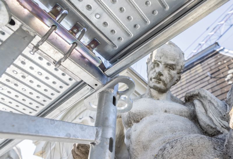 PERI UP was also used in the second stage of the project, this time to scaffold the facade. The low volume of materials required for the vertical variant of the PERI UP Facade Scaffold proved to be extremely beneficial given the limited space available. This became evident when transporting the materials from the storage facility to the construction site and when materials were stored temporarily on site. If a frame system had been used for the scaffolding process, the complex facade with its balconies, window niches and projecting frescoes at different heights would have posed a much more significant challenge and would have necessitated extensive assembly work. Even the circular scaffold configurations became child’s play thanks to the outstanding versatility of the PERI UP Scaffolding Kit with its additional integrated component functions, such as the self-locking connections and – of particular relevance in this project – the option of using the vertical of the kit.