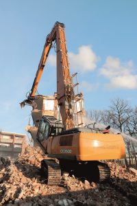 Demolarea clădirilor înalte cu excavatoare tradiționale poate prezenta adesea probleme. Montarea unui braț extins de 21 de metri este o modalitate de a aborda un astfel de șantier, așa cum a demonstrat un excavator pe șenile CASE CX350D. Avantajele acestuia? Operatorul este încântat de confortul cabinei, de faptul că este foarte spațioasă, dar și de joystick-ul care permite un control precis al foarfecii de demolare. De asemenea, cabina basculantă este absolut indispensabilă datorită brațului lung al echipamentului de lucru, oferind un plus de vizibilitate și, implicit, de siguranță.