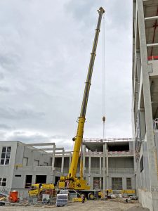 „În operațiunile noastre de asamblare prefabricate de zi cu zi, trebuiesc transportate o mare varietate de elemente – astfel macaraua este utilizată în mod regulat la capacitatea sa maximă de încărcare. Achiziționarea GMK5150L ne-a făcut mult mai independenți. De exemplu, un șantierr care se ocupă de extinderea unui magazin mare de mobilă este un exemplu tipic în acest sens. Toate coloanele, grinzile, elementele de perete și tavan au fost ridicate cu tot terenul Grove ”, a adăugat el.