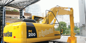 Încă o dată Komatsu anticipează viitorul și lansează în anul 2008 primul excavator hidraulic cu acționare hibridă din lume, modelul PC200-8, acesta integrând sistemul Komatsu Hybrid dezvoltat in propriile laboratoare de cercetare. În anul 2010 începe producția de serie a acestuia.