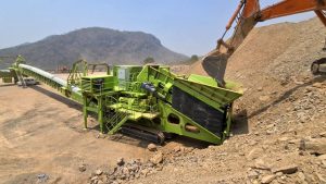 Astfel, concasorul LT1510RC, care poate lucra cu o productivitate de până la 1.500 t/h, produce în acest circuit de lucru aproximativ 900-1.200 t/h (în funcție de modul de alimentare) de material cu mărimea de la 0 la 300 mm.