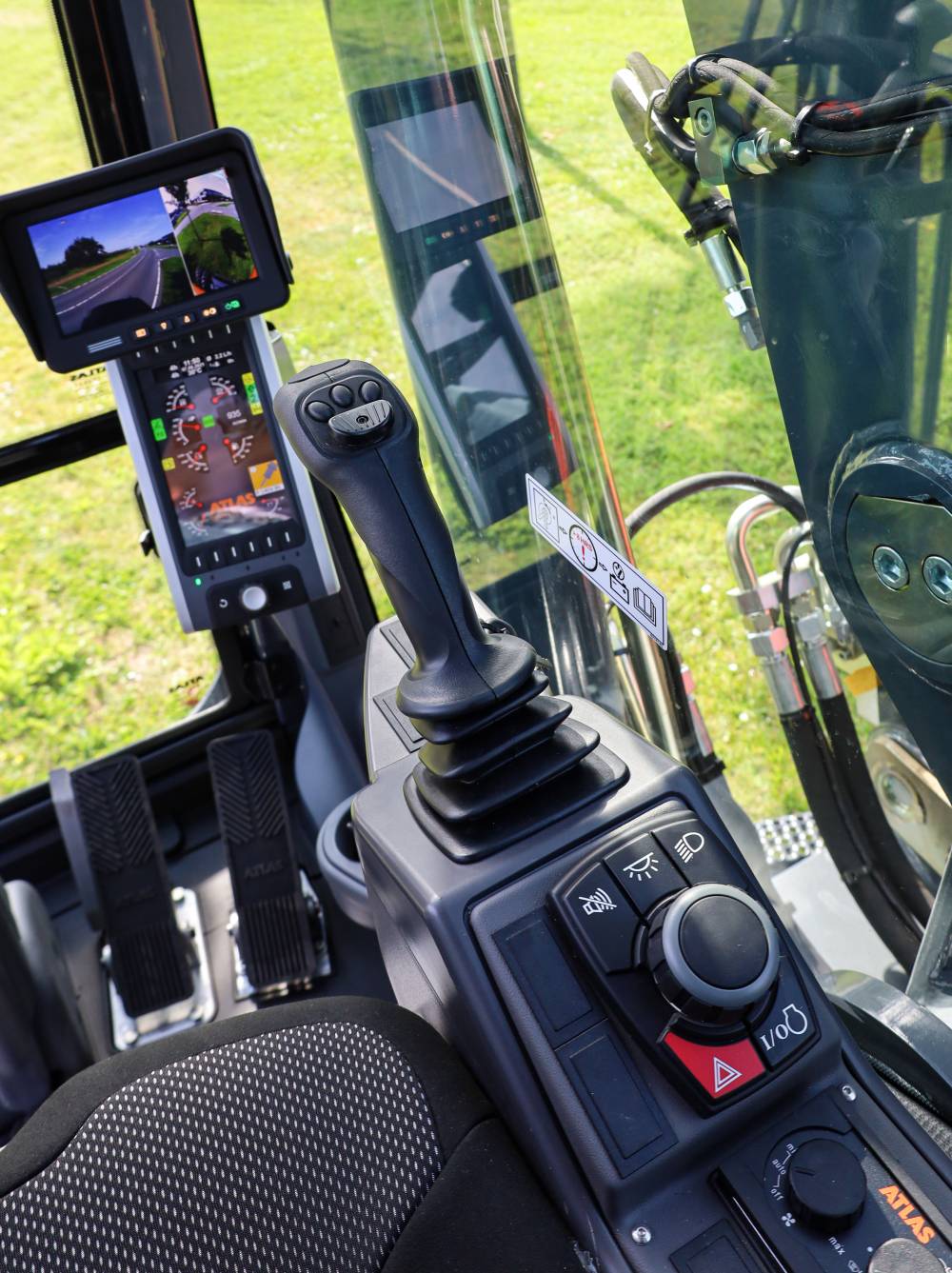 La interior, excavatorul pe roți Atlas 140W devine, cu adevărat, cel mai bun prieten al operatorului. Portiera cu deschidere largă permite accesul facil în cabină, unde utilizatorul beneficiază de spațiu mai mult decât suficient în zona picioarelor și are nenumărate opțiuni în ceea ce privește spațiile de depozitare. Datorită construcției cabinei și geamurilor de mari dimensiuni, gradul de vizibilitate pentru operator este unul excelent.