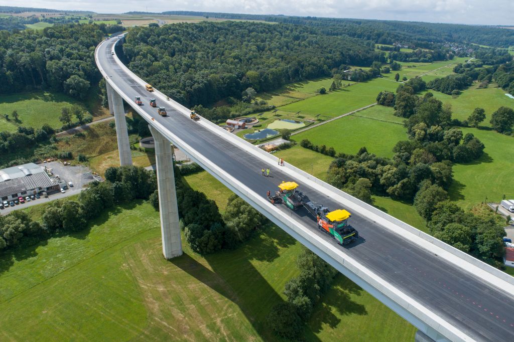 Construirea unei rute ocolitoare în jurul zonei Bad Wünnenberg, în Westfalia, pentru a decongestiona traficu,l reprezintă un proiect de actualitate, care urmează să fie finalizat în primăvara anului 2022. Noul drum B480 face parte dintr-un coridor de trafic destinat creșterii afluxului de vehicule în regiunea Hochsauerland, aceasta devenind astfel mai accesibilă. Secțiunea de drum cu cele mai mari probleme tehnice este reprezentată de către podul Aftetal, care are aproape 70 m înălțime și 785 m lungime. Aici, provocările tehnice au venit una după alta: înălțimea construcției, dar și poziția geografică. Acesta este expus, chiar și pe vreme bună, unui vânt care suflă puternic și răcește rapid temperatura mixturii asfaltice proaspăt turnate. Iar cerințele proiectului presupun realizarea unui drum la cele mai înalte standarde posibile de calitate pentru suprafața de rulare.