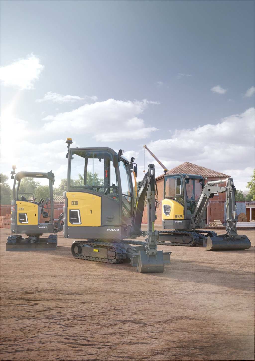 Încărcătorul compact pe pneuri L20 Electric și excavatoarele compacte EC18 Electric și ECR18 Electric completează gama de utilaje electrice deja existente, precum încărcătorul L25 Electric și excavatorul ECR25 Electric. Cele două modele existente au fost deja testate pe piața internațională, dovedind că pot aduce pe șantier puterea și performanța necesară fără a polua și cu un nivel sonor mult scăzut. Cele trei modele noi fac parte din angajamentul Volvo CE, primul din industrie, de a acoperi întreaga gamă de încărcătoare pe pneuri și excavatoare compacte marca Volvo cu motoare acționate electric.
